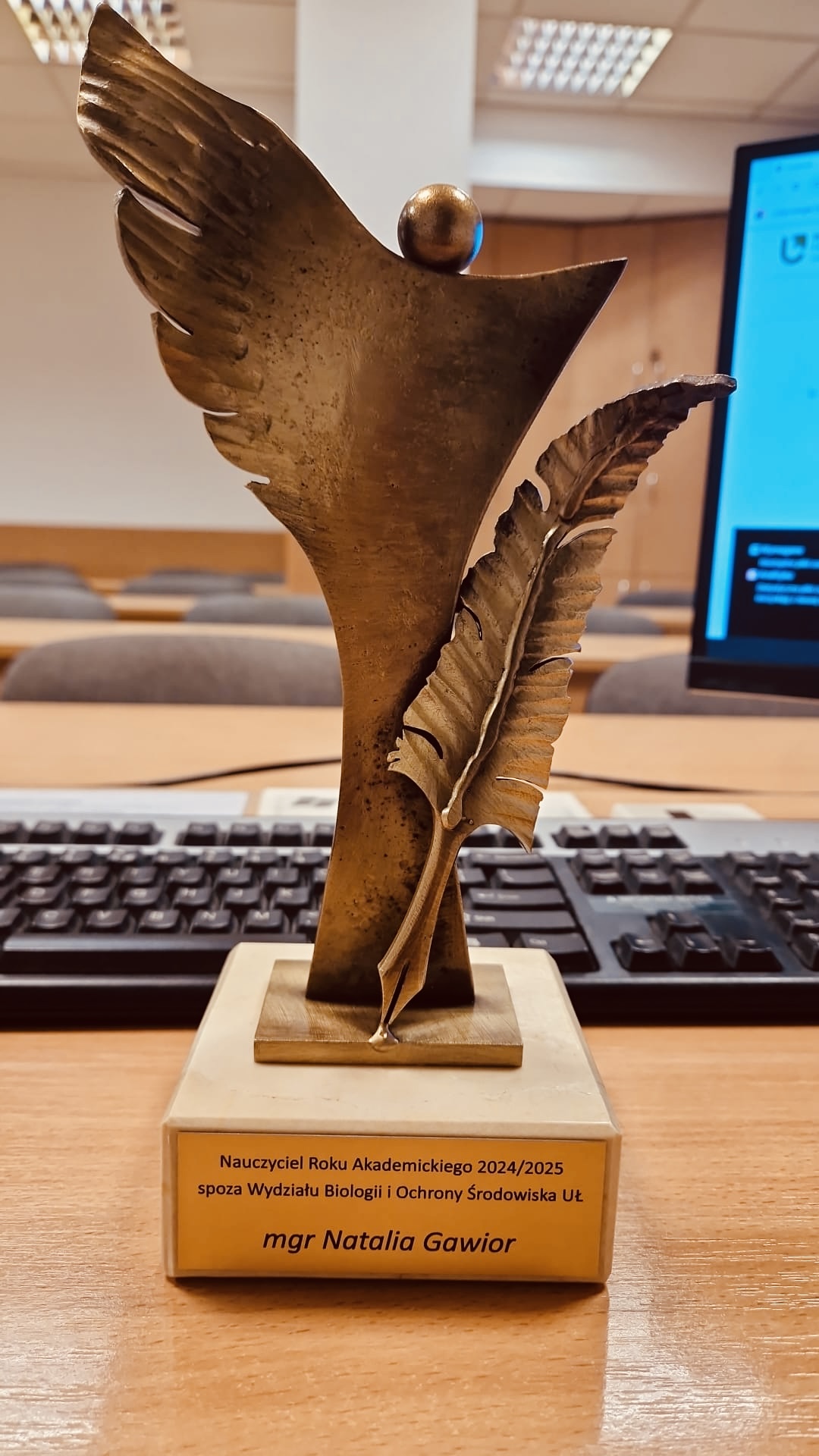Trzeci raz z rzędu wykładowczyni CJiC mgr Natalia Gawior została uhonorowana statuetką dla Najlepszego Nauczyciela Akademickiego spoza Wydziału BiOŚ.